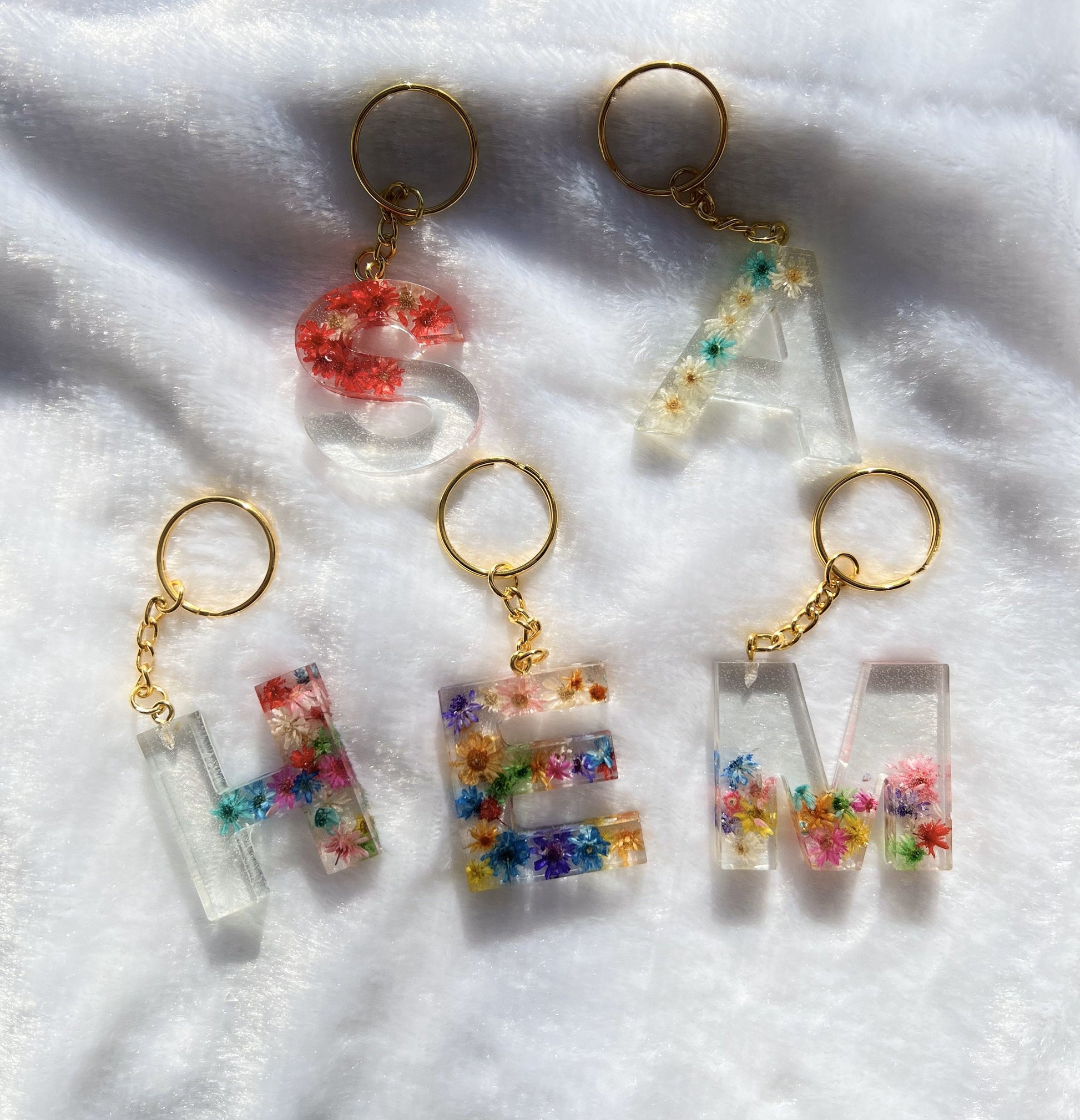 Custom Letter Resin Keychain, Pressed Flower Keychain, Luggage tag, Alphabet Charm Key pendant, Keychain for everyone, various designs, Gift
