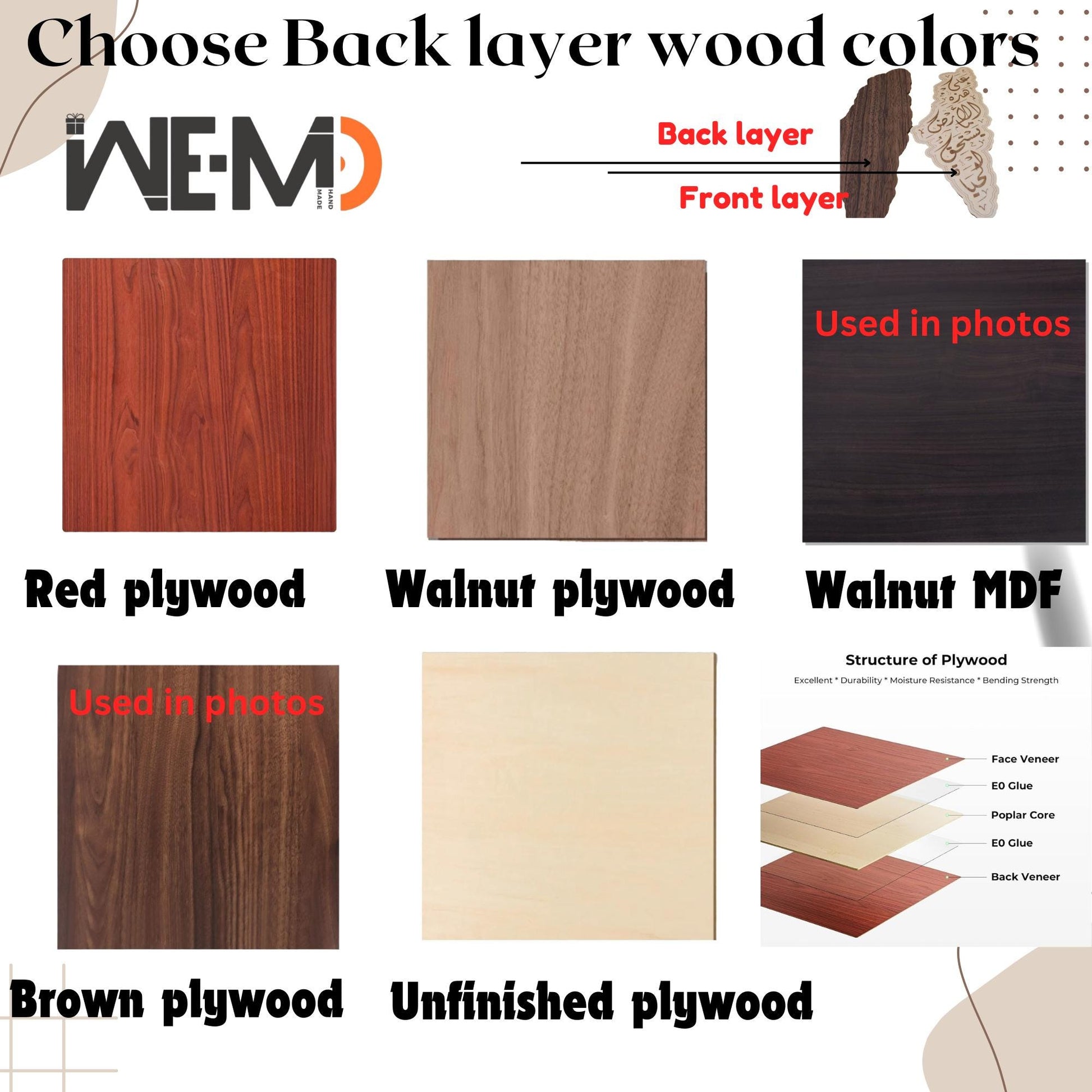 Introducing our Custom Islamic Wall & Car Decor, meticulously crafted from high-quality plywood. Available in multiple finishes including Red, Walnut, and Brown, this stunning piece features intricate Arabic calligraphy. It serves both as wall art and a car hanger, with options for sizes ranging from 5 to 12 inches. Personalize the back with your name or a message, making it a perfect gift for special occasions like Eid, weddings, or housewarmings. Support a small family business while adding a touch of cultural beauty to your space.