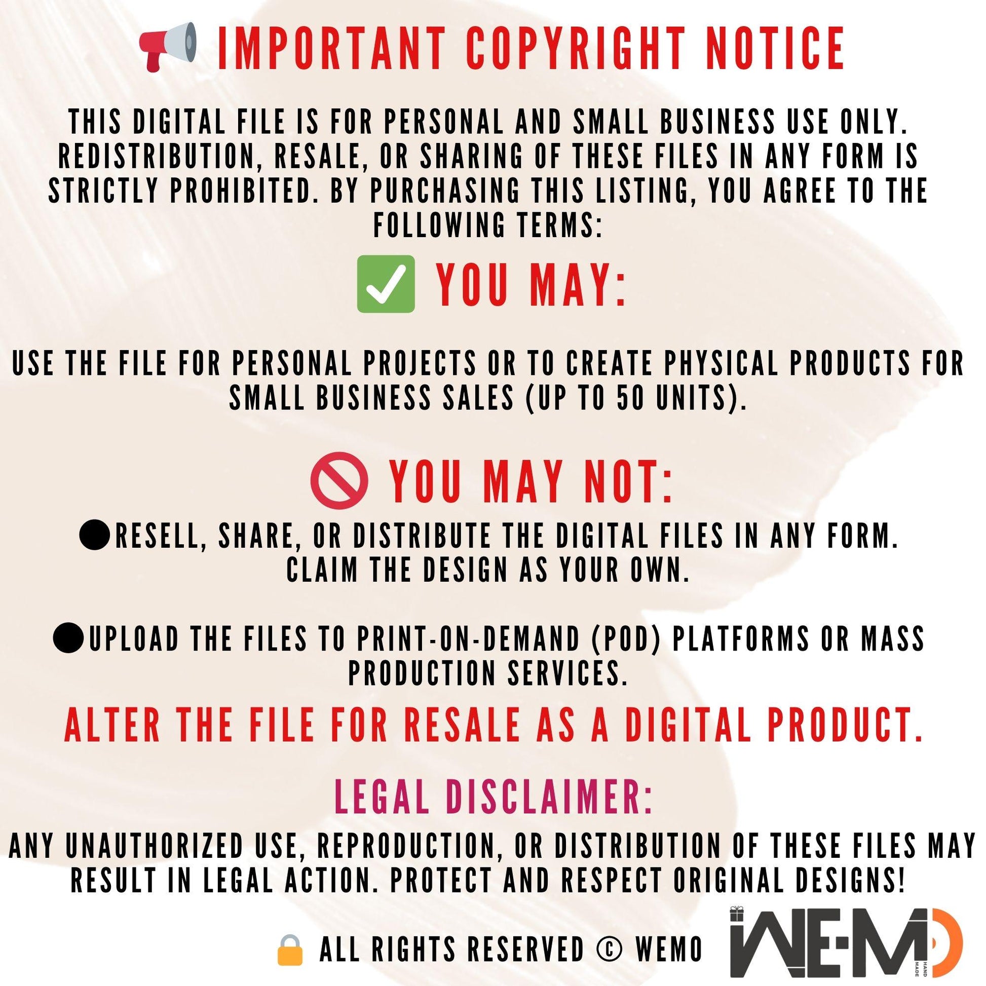 ✔ You may use this file for personal projects and for creating physical products (up to 50 units) for small business sales.